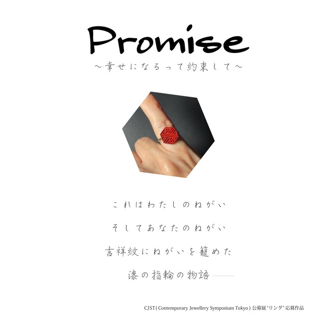 ※※※※※※※※※※※※※※※※※※※※※※※※※※※※※※※※※※※※※※※※ 【 Promise ~幸せになるって約束して~ 】 これはわたしのねがい そしてあなたのねがい 吉祥紋にねがいを篭めた 漆の指輪の物語ー ※※※※※※※※※※※※※※※※※※※※※※※※※※※※※※※※※※※※※※※※※ 自分の作品を手にして頂く事で 少しでも日々のやる気に繋がったり 少しでも運気が向上したり 少しでも辛い状態の今に寄り添えたり そんな想いを篭めて 作品を創作しています 作品自身にも そんな願いを篭めた 物語性があるものにしています 今回は 「ピンキーリング」 小指の物語 いつの間にか交わす事が少なくなった 「指切りげんまん」 小指を観る度 思い出して欲しいのです 幸せになるっていう「約束」を 少なくともわたしは 大切な人からプレゼントされたのならば その大切な人は あなたの幸せを願っています ※※※※※※※※※※※※※※※※※※※※※※※※※※※※※※※※※※※※※※※※ Promise ~Promise me you'll be happy~. This is my wish And your wish I put my wishes in the auspicious crest The story of a lacquer ring ※※※※※※※※※※※※※※※※※※※※※※※※※※※※※※※※※※※※※※※※※ By having my work in your hands I hope it will motivate you to do your daily work. or to improve your luck, even if only a little. To be there for you in your difficult situation, even if only a little With such a thought in mind I create my works with these thoughts in mind. in the work itself. I put such a wish I try to make it a narrative piece. This time "Pinky Rings." The Story of Pinky Rings Before I knew it, we were no longer exchanging "Fingercutting Mania Every time I see a pinky I want you to remember I want you to remember the promise At least I do. If you have been given a gift by someone you love That special person is Wishes you happiness ※※※※※※※※※※※※※※※※※※※※※※※※※※※※※※※※※※※※※※※※※